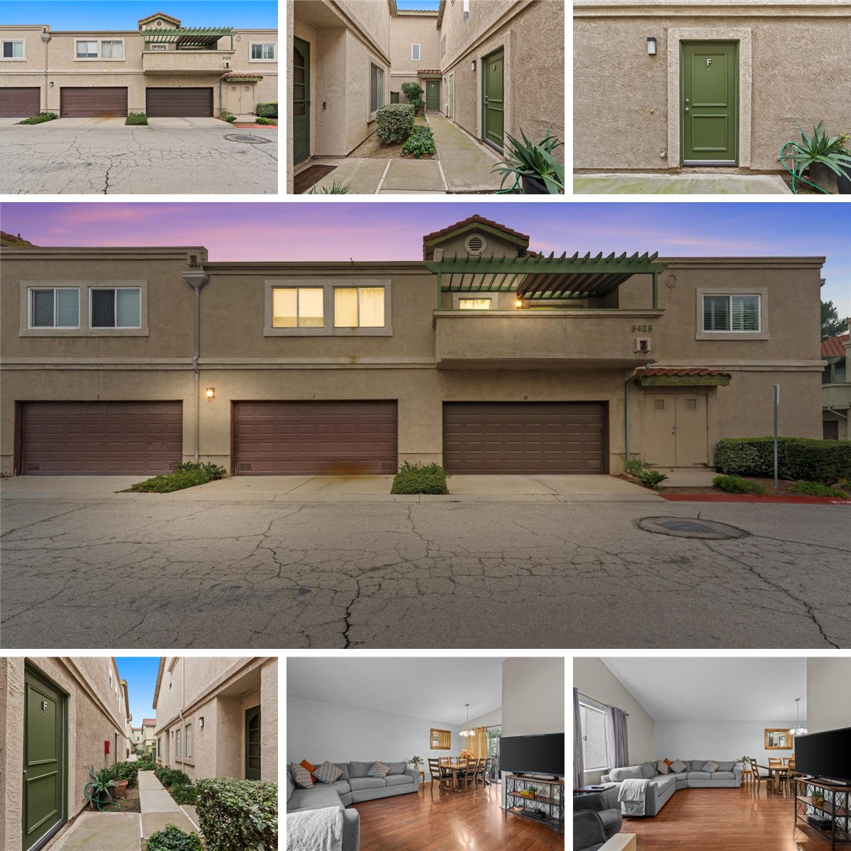 - Townhouse-style layout with private entry, Attached two-car garage, In-garage laundry, Vaulted ceilings in living and dining areas, Private balcony off dining area, Fireplace in living room, Well-maintained community, Community swimming pool, Tennis and basketball courts, Greenbelts, walking paths and playground